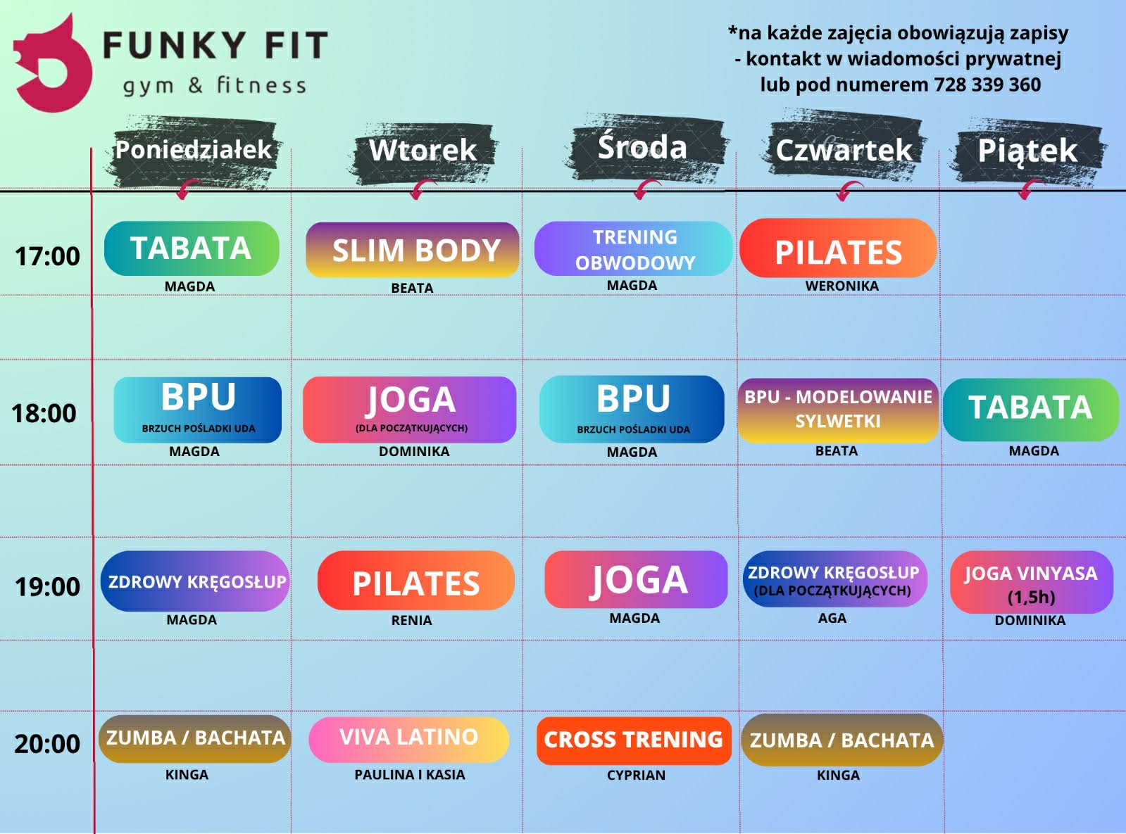 Wolisz solidny wycisk, żeby wyczyścić głowę po pracy, czy spokojne rozciąganie na dobry początek dnia? Rzuć okiem na nasz grafik i wybierz to, na co akurat masz ochotę.